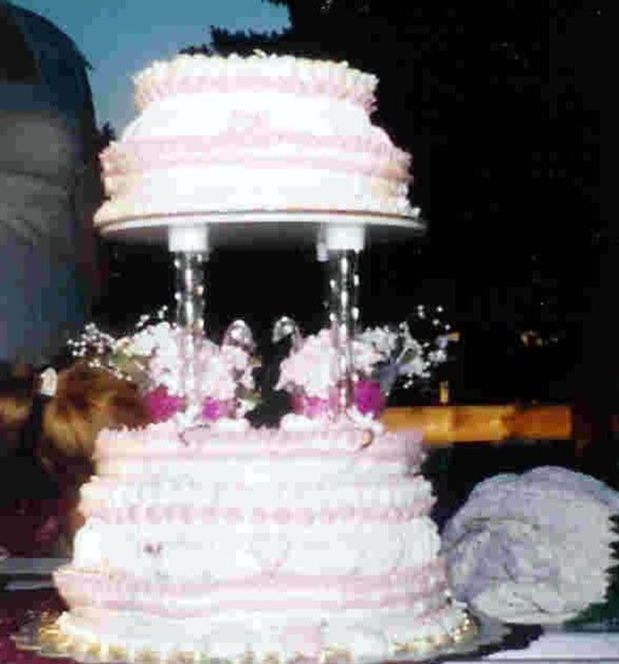 All buttercream. This was my first teired cake. I was trying a lot of different things; too much for one cake. The bride didn't care...the price was right....free