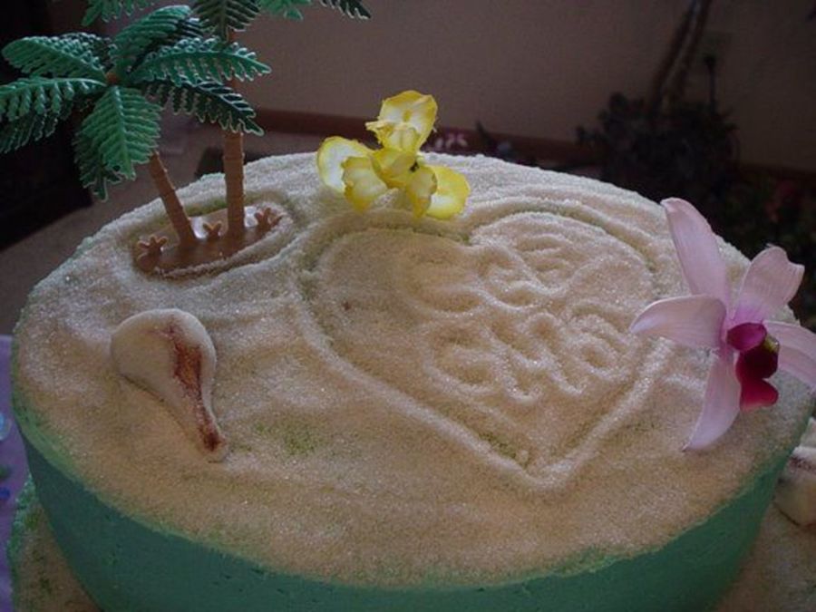 This is the top of the cake. I put the bride and grooms initials in the "sand". The shells are butter mints that I made.