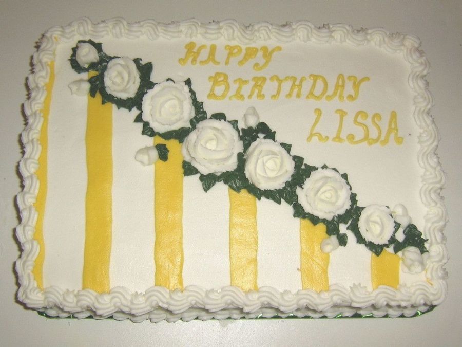 Buttercream icing, strawberry filling 1/4 sheet cake.