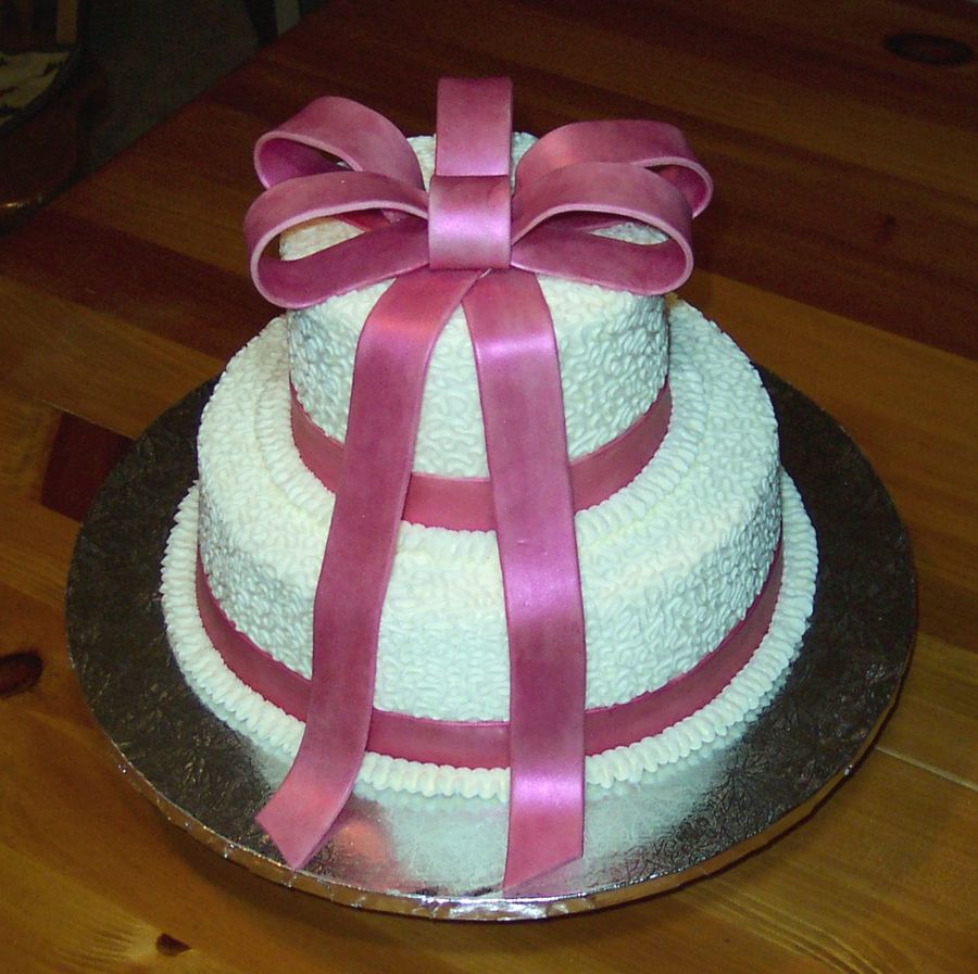 Simple cornelli lace covering BC. Ribbon and bow are fondant painted with dry Tulip Red Luster Dust.