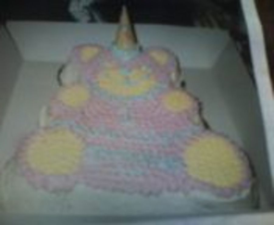 Made this for a little girl, these were the colors the mother wanted. Plane yellow cake with bc icing.