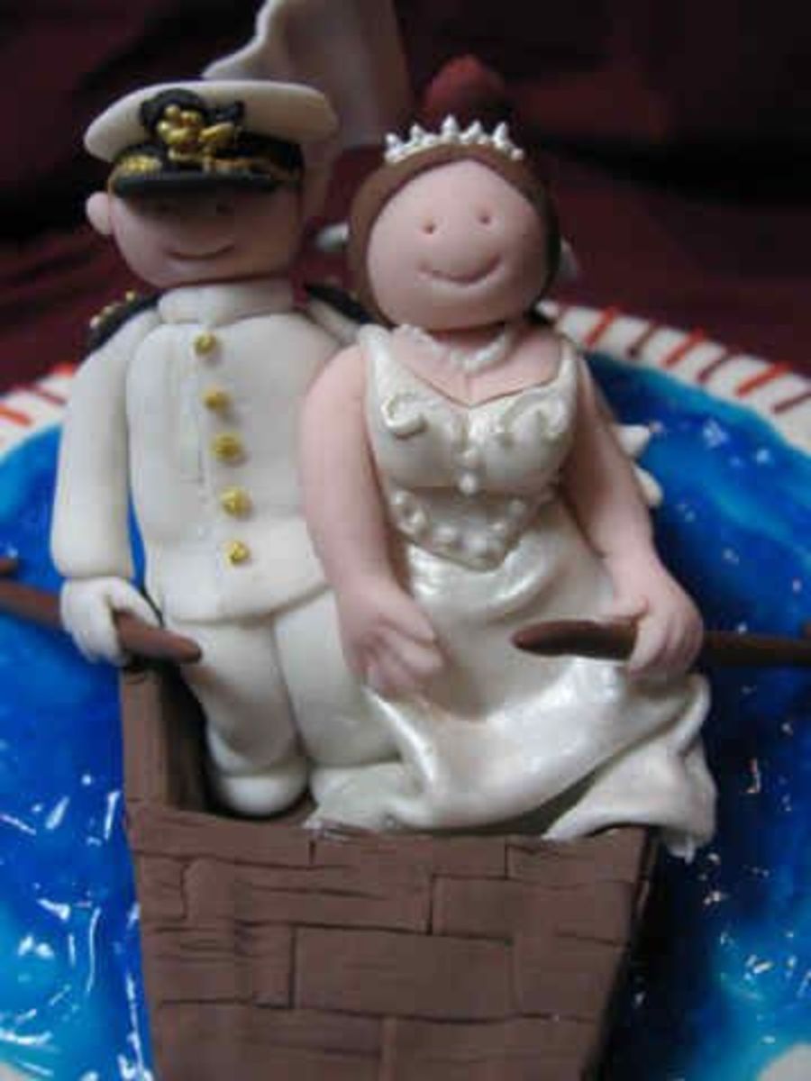A closeup of the bride and groom on my Hokie bridal shower cake. I'm pretty proud of them, especially the groom's Navy uniform. The bride also has a French twist with pearl combs in the back.