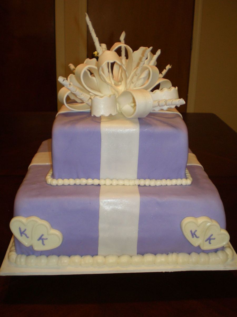 This was my first gumpaste bow, i was pretty happy with it. This is my first package cake and i got a lot of great comments. It made me feel l ike i really am progressing in the right direction. The cake is vanilla with vanilla buttercream covered in MMF. Bow is 100% premade gumpaste by Wilton. Thanks everyone for your help and advice.