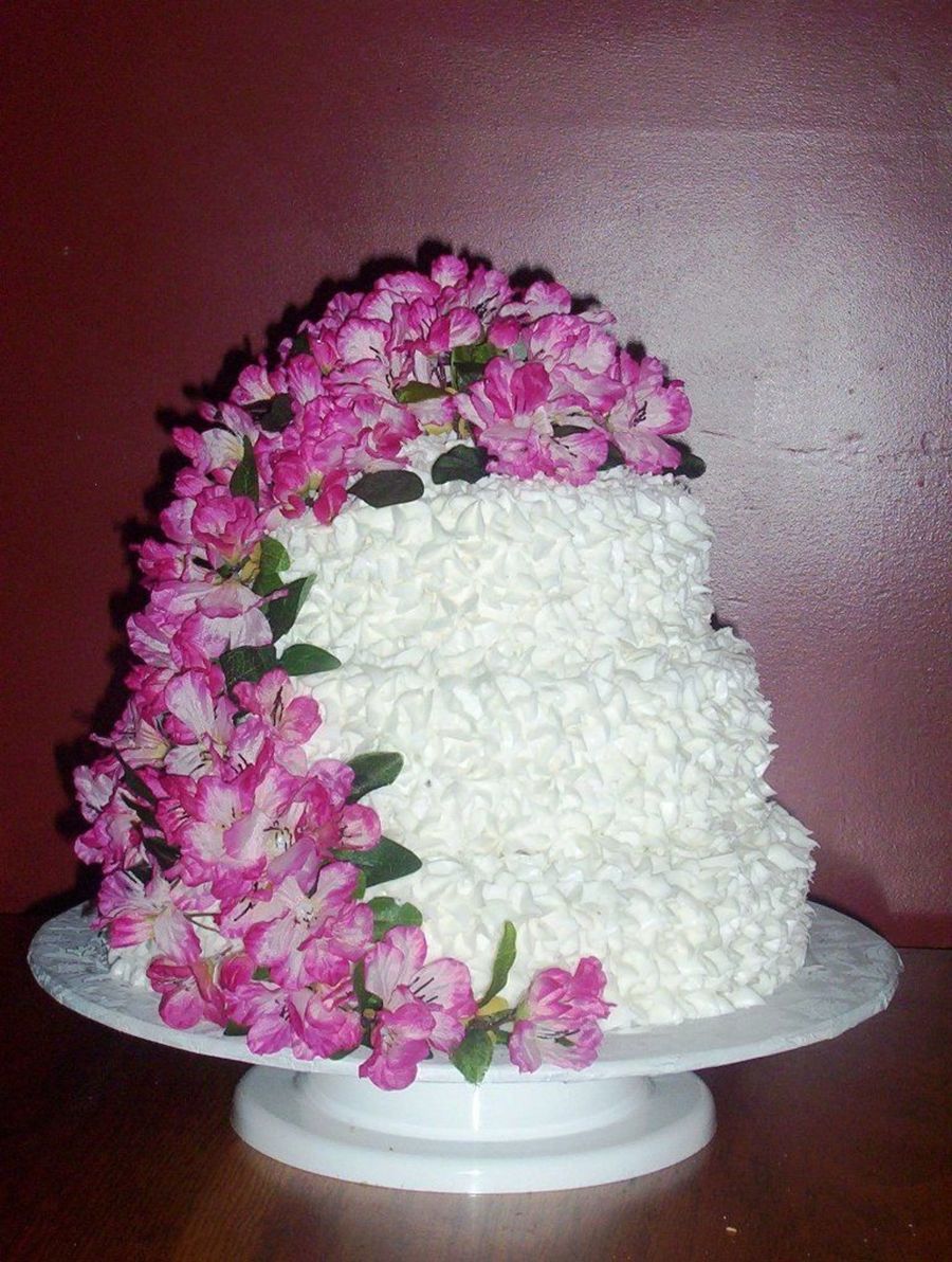 3 tier round stacked with star flowers in bc. flowers are silk. I donated this to the church for their Valentines day Dance