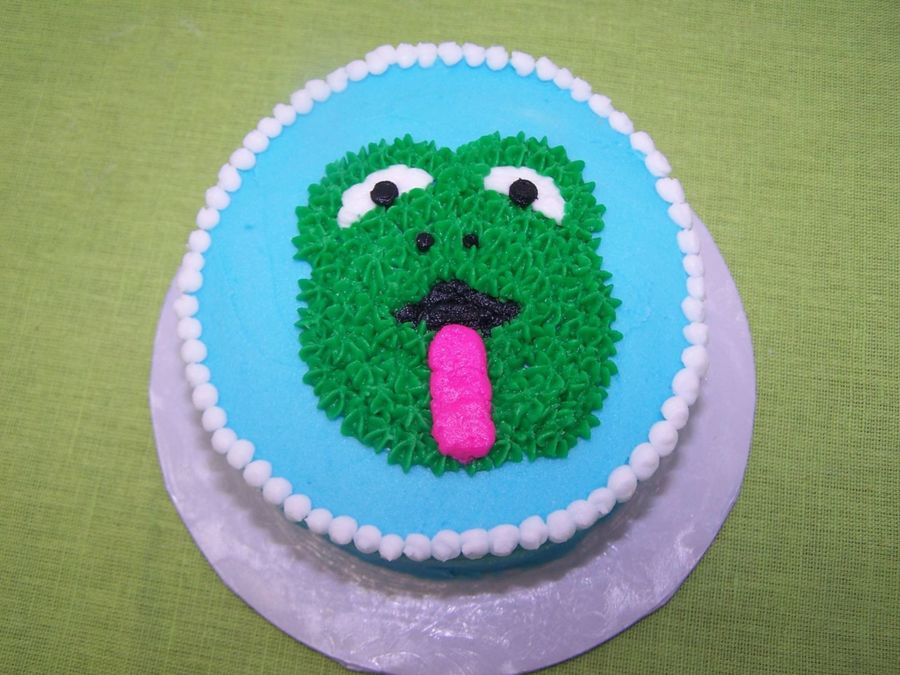 This is the smash cake to go with the larger frog cake. Iced in bc