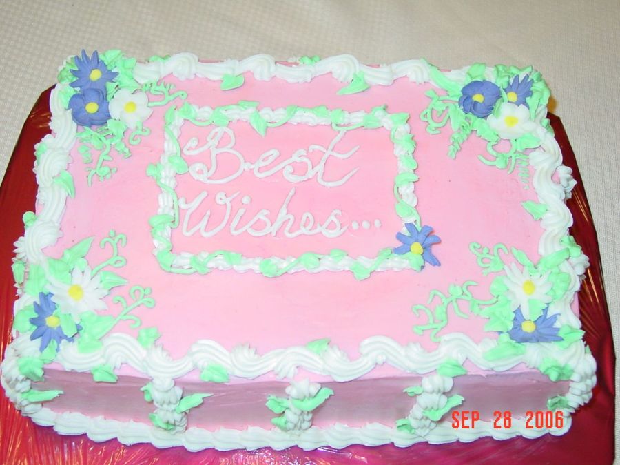 This is a chocolate cake with caramel filling and butter cream dream icing. I loved the texture of the icing but it does NOT crust very well, so Viva method was out:( Flowers are RI, rest buttercream. I received a Lot of help from various CCers-from baking to decorating. Thank you all! I guess since I am still new to decorating, I get carried away with decorating the cake and I need to still get to the point where you know when to stop!!!!