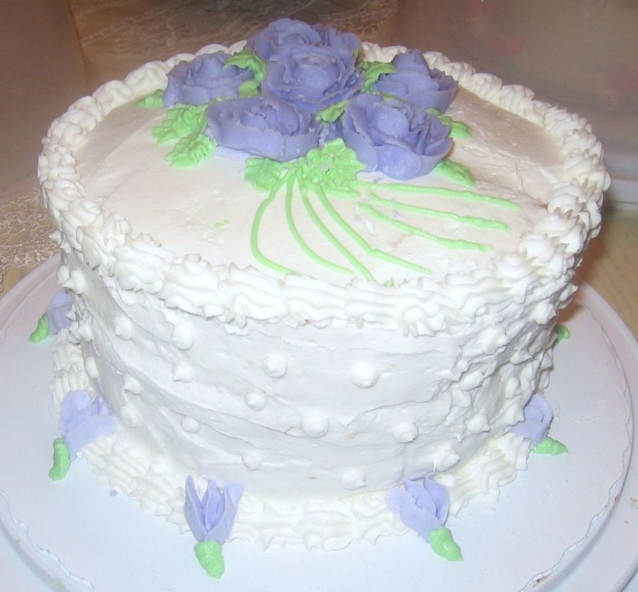 Final Cake, Not to bad after what happened. The icing is not how I wanted it, but the cake fell apart in transport. Other then that I think it came out well.
