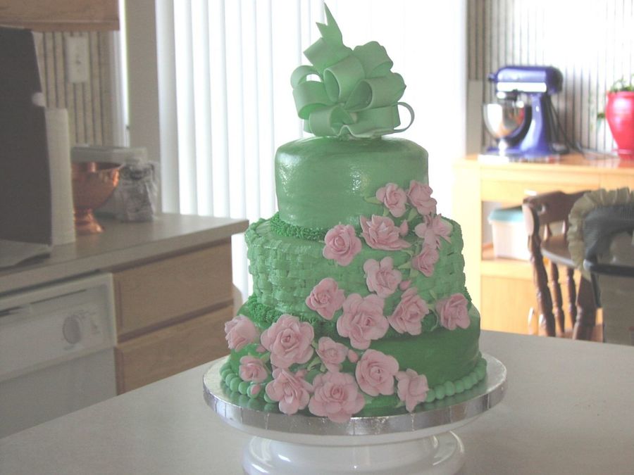 My second stacked layer cake. My first loop bow (thanks to instructions posted on this website. Thanks Sugar Wonders Cake Club. My first gum paste flowers (self taught). I really need to take the class. I hope to get better soon.