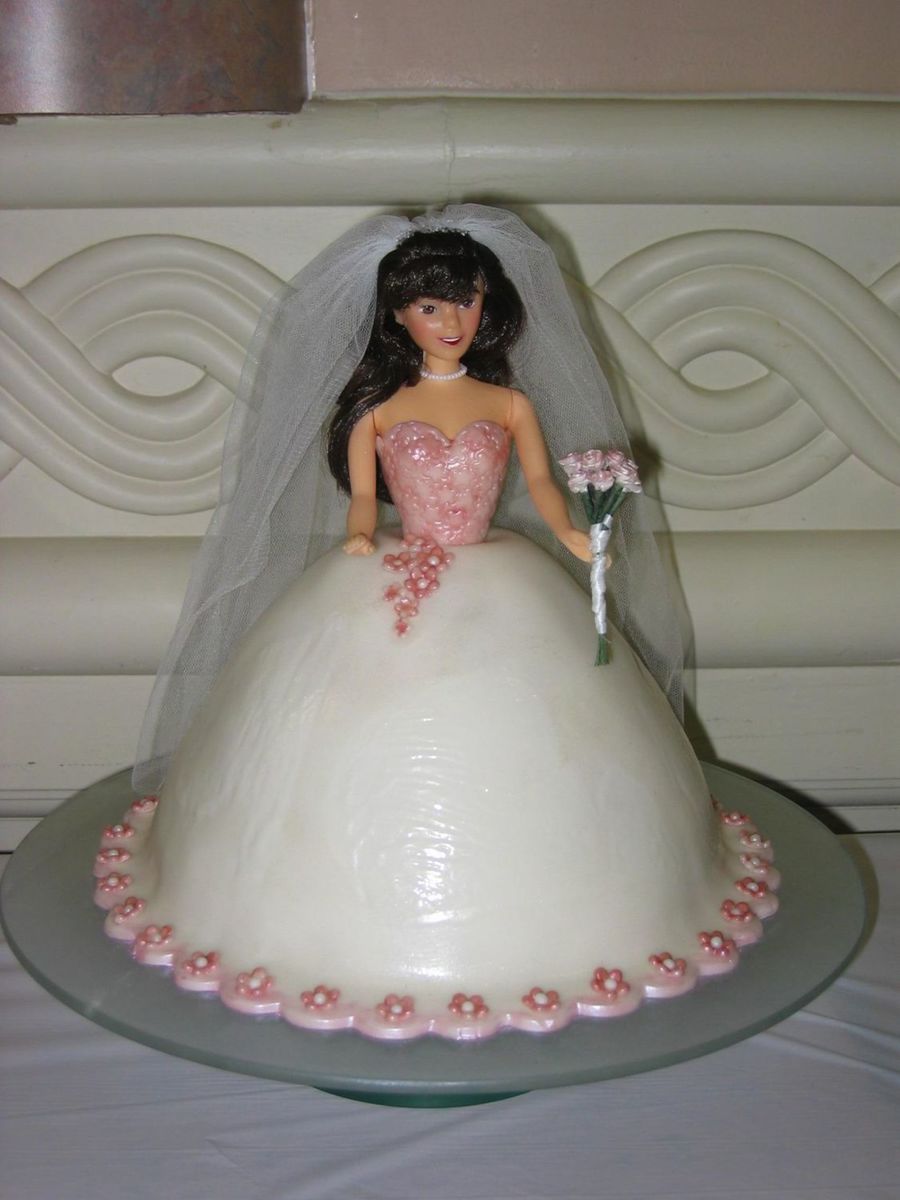 Made for my Brother's Wedding. It's Mixed Berry Pound Cake from the Williams-Sonoma website. It's not supposed to be so shiny, but it ended up in the cooler and formed condensation when brought to room temp. :( It was matte with super pearl dust brushed all over the skirt. Thanks to spottydog for help with the scalloped skirt edge :)