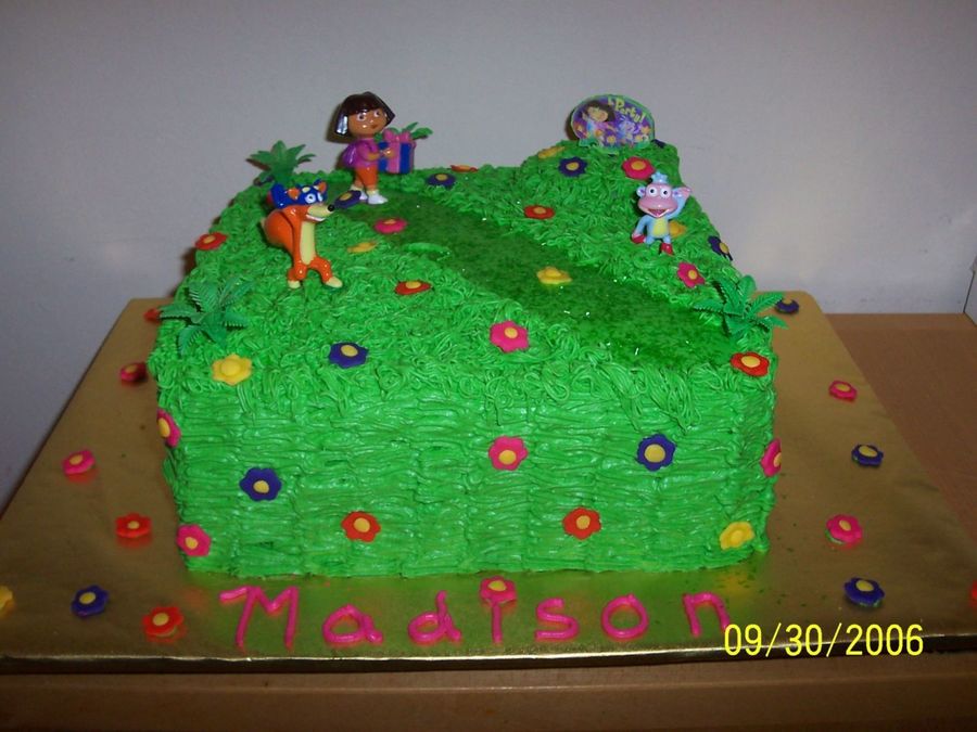 I used a square 10 x10 pan 2 layers. Also for the flowers I used fondant and the rest is bc.