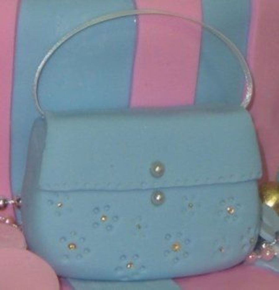 Close up of a purse, made out of fondant.