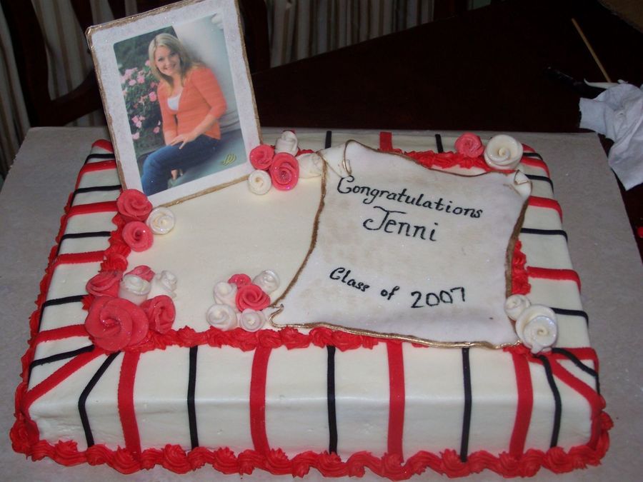 This was the last of the 3 graduation cakes I had to make for the same party. Edible image plaque, special thanks to missyek for walking me through it, fondant accents. Thanks for looking!