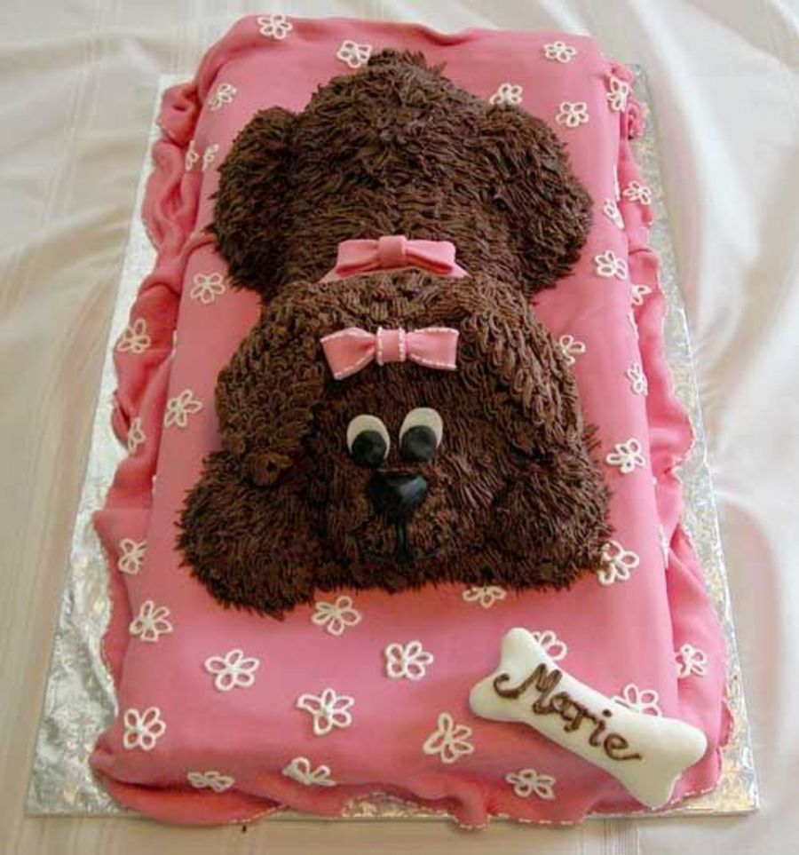 This is one of the cutest cakes I've ever seen! The brown dog against the pink bed really stands out and looks great!