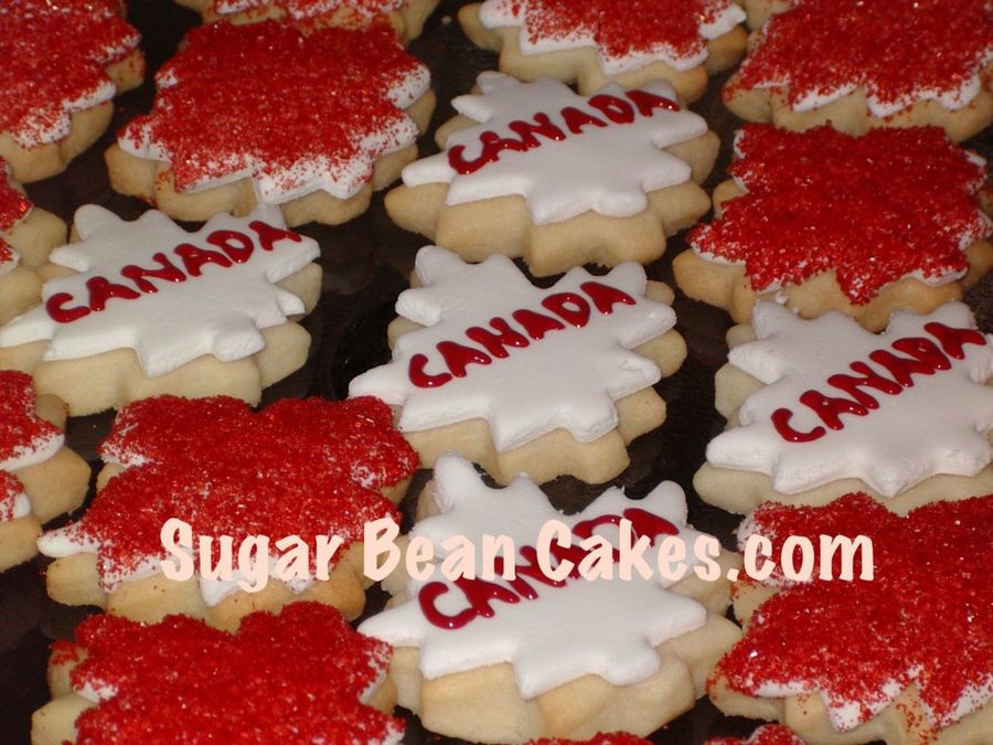 Wow...we made a TON of these. They are to give out at our local Canada Day parade! Maple leafs with sugar crystals, and fondant