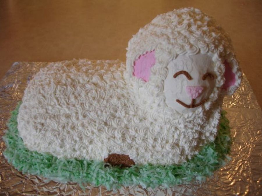 I made two of these Lambs for Easter. This is a lemon cake with buttercream frosting. I used green colored coconut around the lamb.