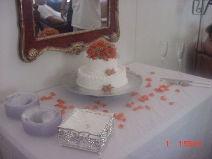 This cake was for my uncle and his wife on their first anniversary. They wanted it wedding cake style since they didnt really have one (they got hitched:-) Butter cream cake with the top filled with strawberry mouse and athe bottom, chocolate mousse.