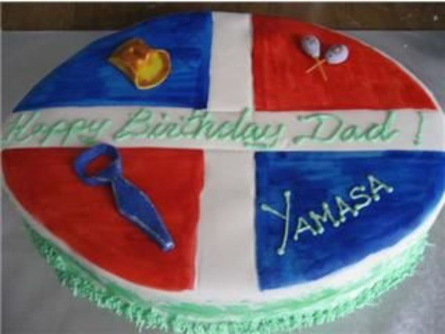 Dominican flag, green represents the island and details on top are symbolic of DR items.