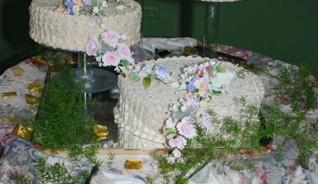 Cake covered in fondant, french vanilla with strawberry filling/BC. As you can seen I don't have a lot of supplies but I was fun to make.