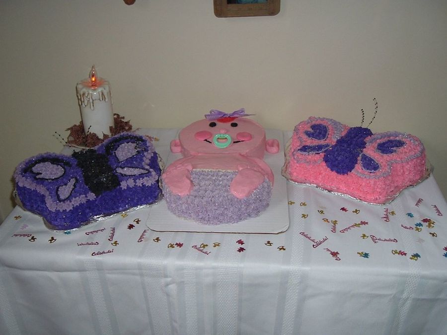 cut out cake made with nine inch rounds and butterfly pans my mom made it for my baby shower