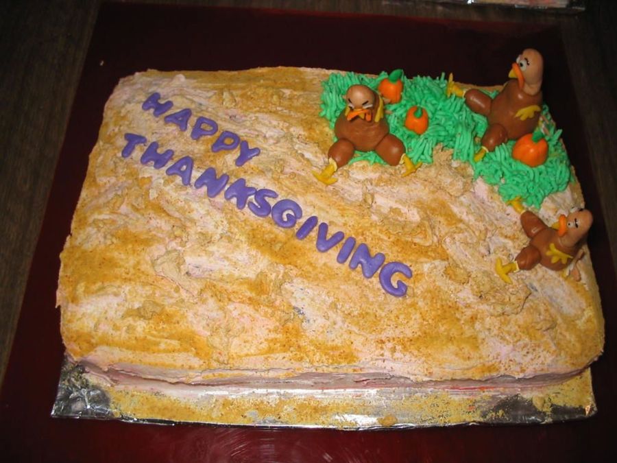 How cute! Love the turkeys and the idea/scene on the cake.