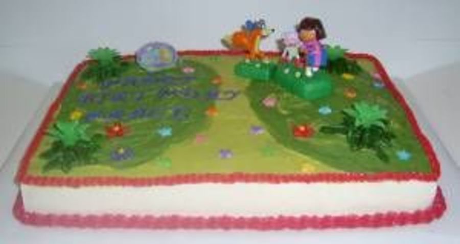 Dora the Explorer and friends adorn this cute sheet cake.