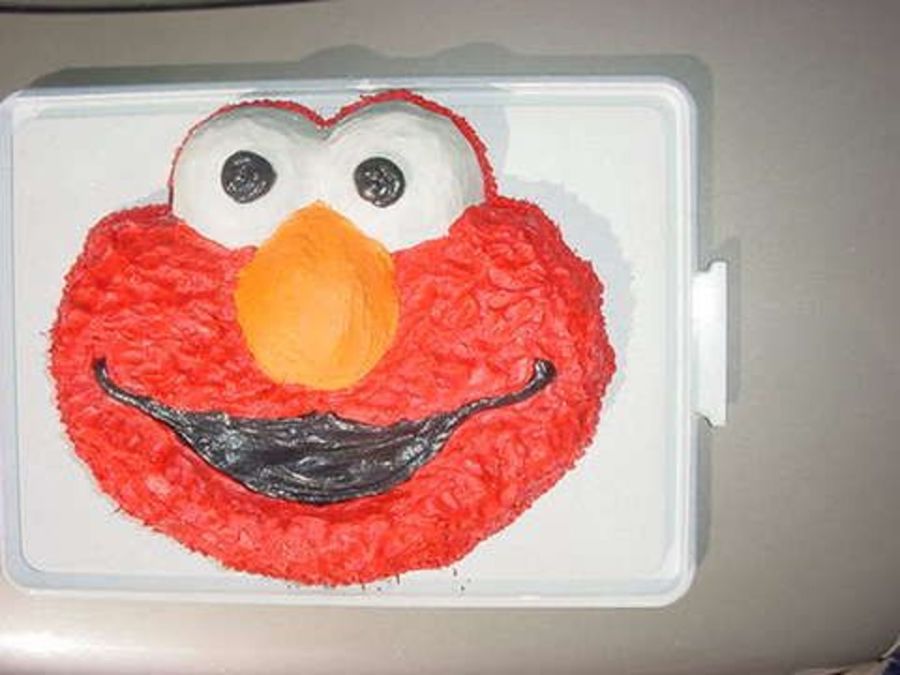 This was the 1st Elmo cake I did for my Godson's birthday. It is white cake iced in all BC. I did extra cupcakes to match (see next photo). The kids loved it!