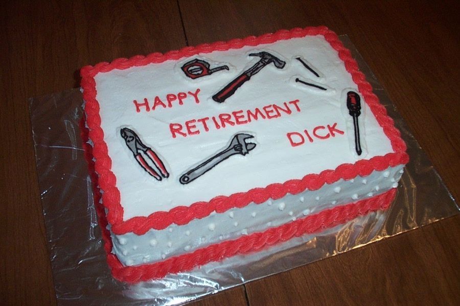 2 layer chocolate fudge cake iced in bc. retiree is a hobby carpenter, so the customer thought a tool-themed cake would be nice.