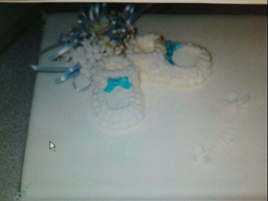 Thanks Karateka, I shaped the boots from sugarpaste and then pipped all over them with a size 1 tube then inserted a cocktail stick into the beads of icing before it dried, giving a "knitted" effect. mind you you cant really see the effect cos of poor pic quality... sorry