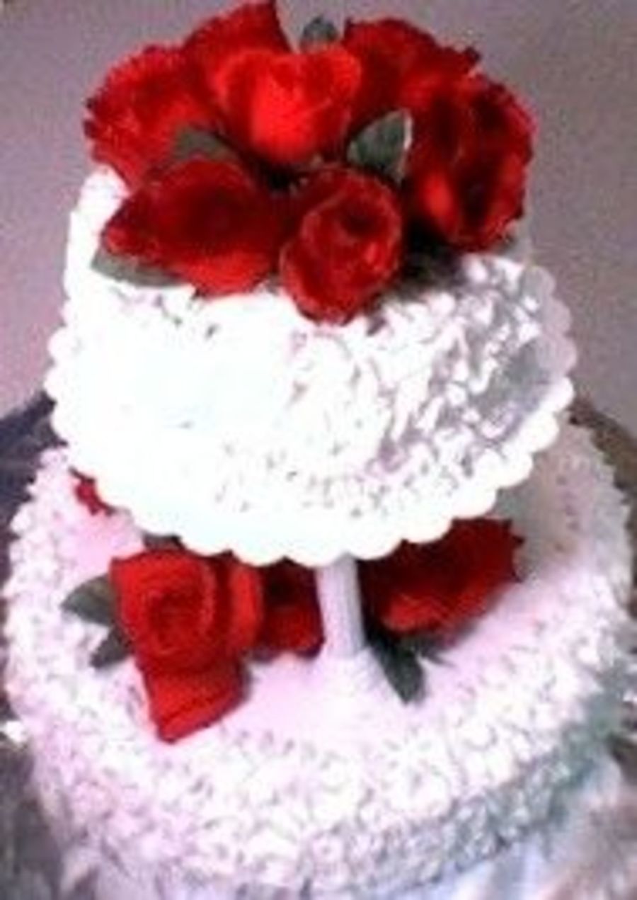 This is the first tiered cake I did. I was in a rush so I used silk roses, but i love the beautifuly contrasting colors. I never expected the colors to pop like they did!