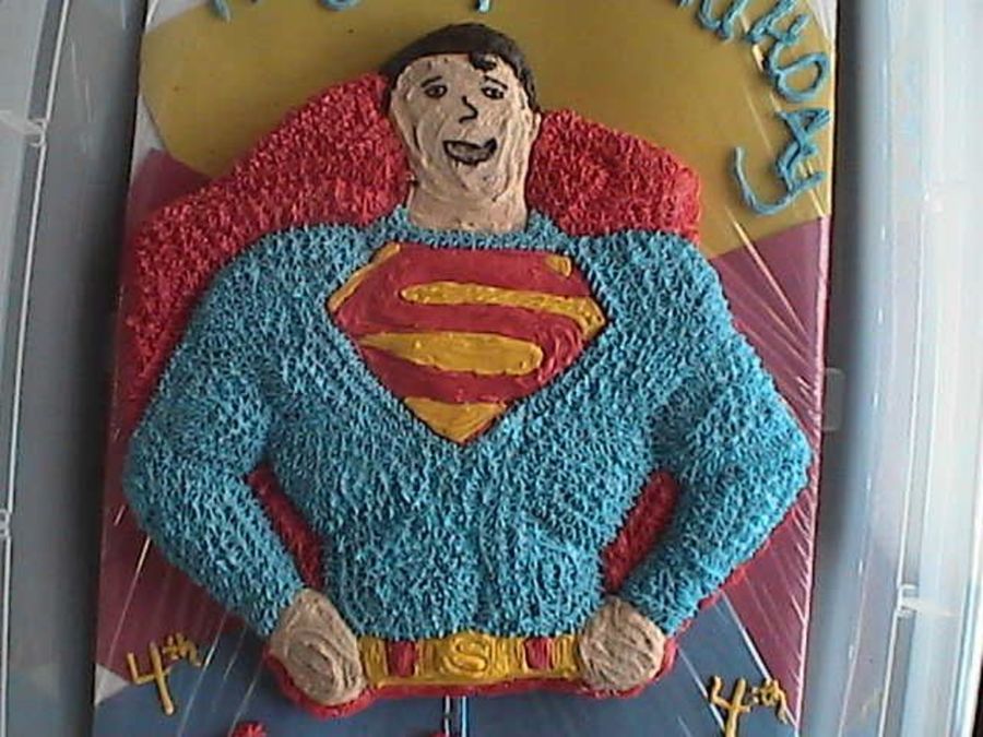 We had 2 different parties for my sons 4th birthday. Here it the Superman cake I made for him. I need tips on smoothing. I read about the Viva towel, but when and how are you suppose to do it? You can see on the hands how I messed it up when i was trying to smooth it!