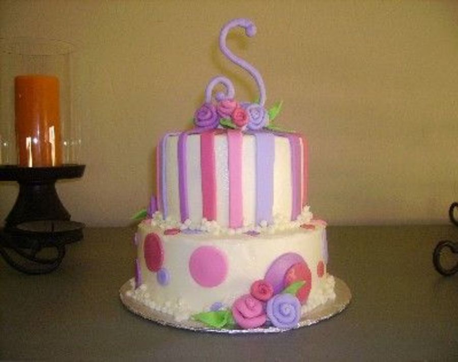This was my first birthday cake that I did for someone else other then family. White cake with BC filling and icing. Fondant accents sizes6/8. Thanks to all for all the ideas here on CC!!