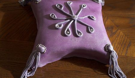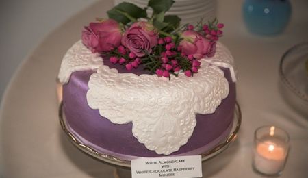 The bride's theme was multi-colored hydrangeas so this four-tiered, four-flavored cake fit right in. It was assembled on a REALLY hot afternoon so I wasn't able to pipe as many leaves onto the tiers as I would have liked.