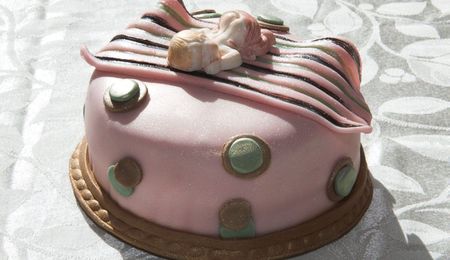 Baby Shower Cake With White Chocolate Sleeping Baby