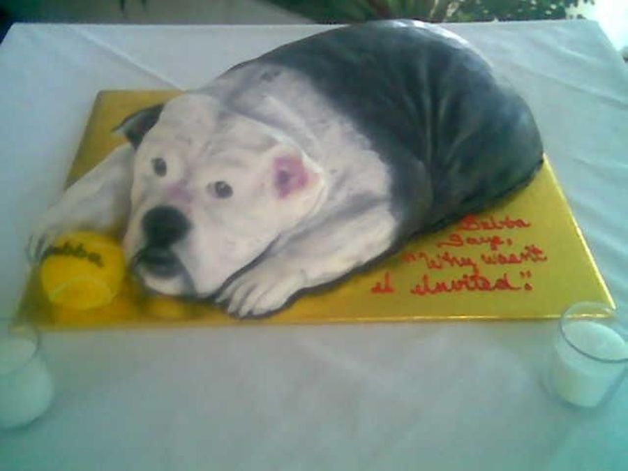 my11536 on 25 Nov 2006 , 3:51pm i looked at the picture of the dog and placed sheetcake on top of one another and started carving,covered with fondant and airbrushed