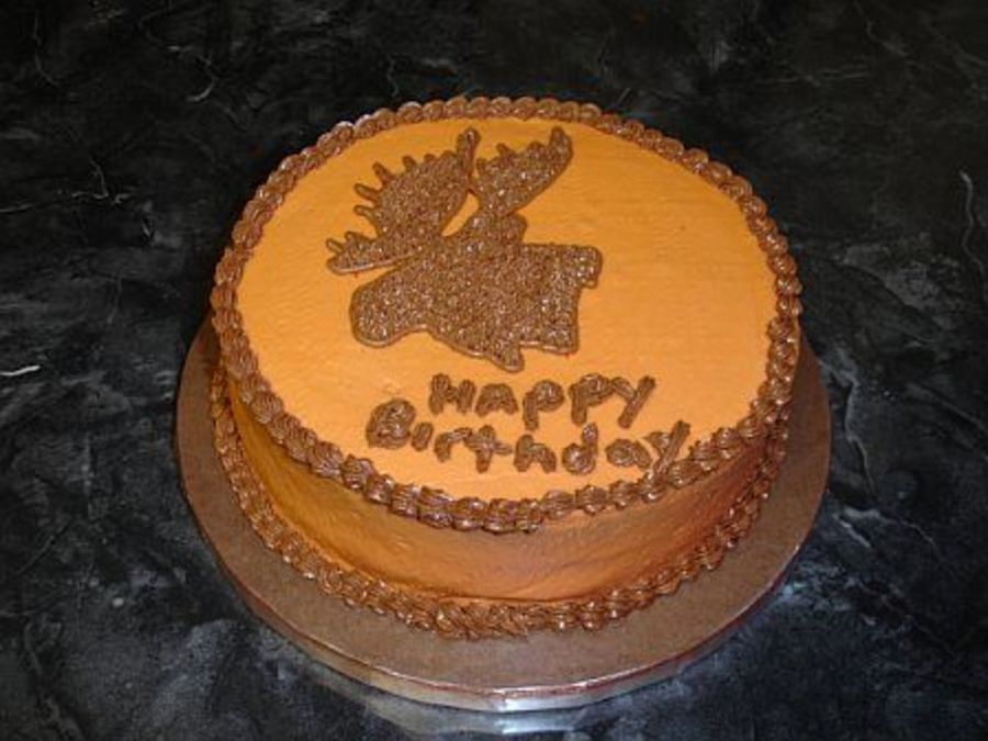 A co-worker asked me to make a cake for her father-in-law's birthday. The only thing she said was that he really likes moose hunting. I found a great moose silhouette, but I forgot to reverse it before putting it on the cake. This is a 8'' carrot cake with crusting cream cheese icing. I used the Viva method for the first time on this cake and it worked really well.