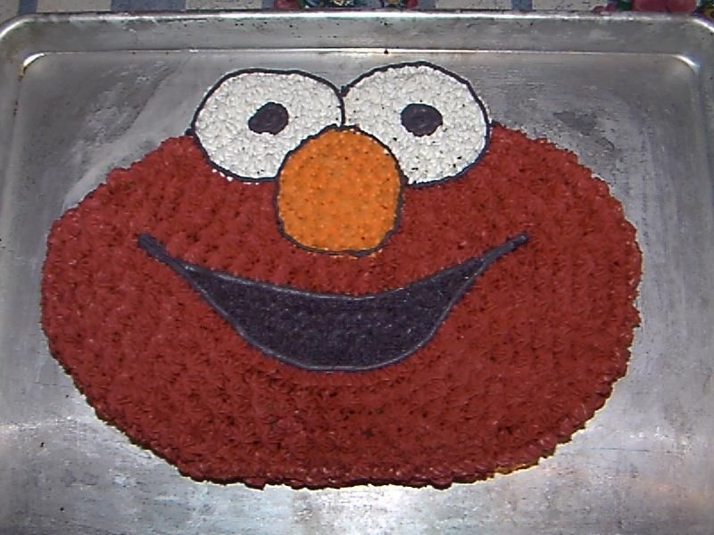 Rectangular cake cut to Elmo shaped and covered with buttercream stars