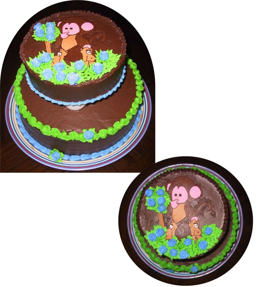 I got the idea for the image off of a cross stitch photo. I made her as a FBCT, and origionally had tried to make the chocolate icing, it didnt come out the right way, so I had to hurridly resort to store bought, and it did not respond nicely to having the FBCT put on it, so it's a little speckled. Friend was happy with the cake for her baby shower none the less.