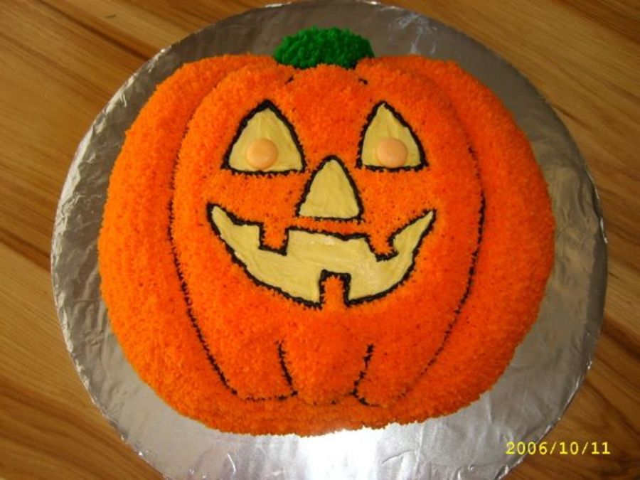 I just started decorating classes and this is my first halloween cake. All buttercream frosting. Eyes are orange Mentos candies.