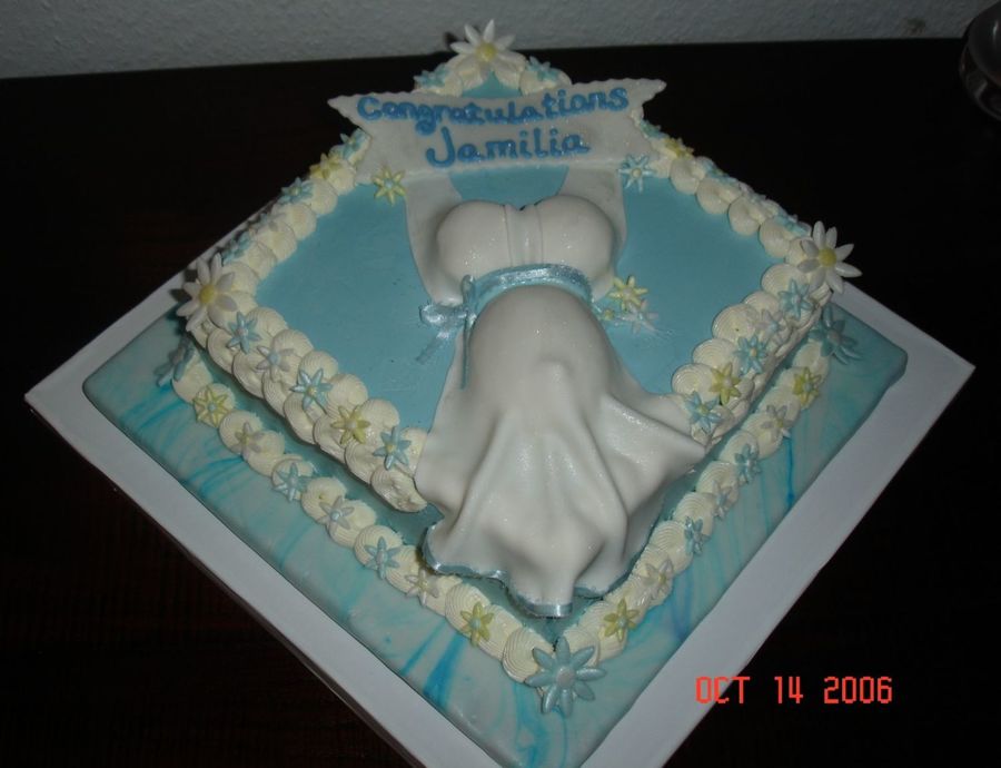 White Chocolate IMBC. Fondant Flowers, Dress and Banner. Belly is mini egg and breasts are mini cupcakes. They are a little too big for the belly, but I guess that's the way pregnancy goes, huh? Not everything is going to be exactly proportioned right, LOL!