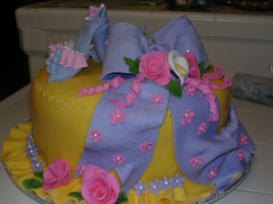 Wow! What a sassy cake. Love the colors, bow, roses, shoe, everything. Great job.