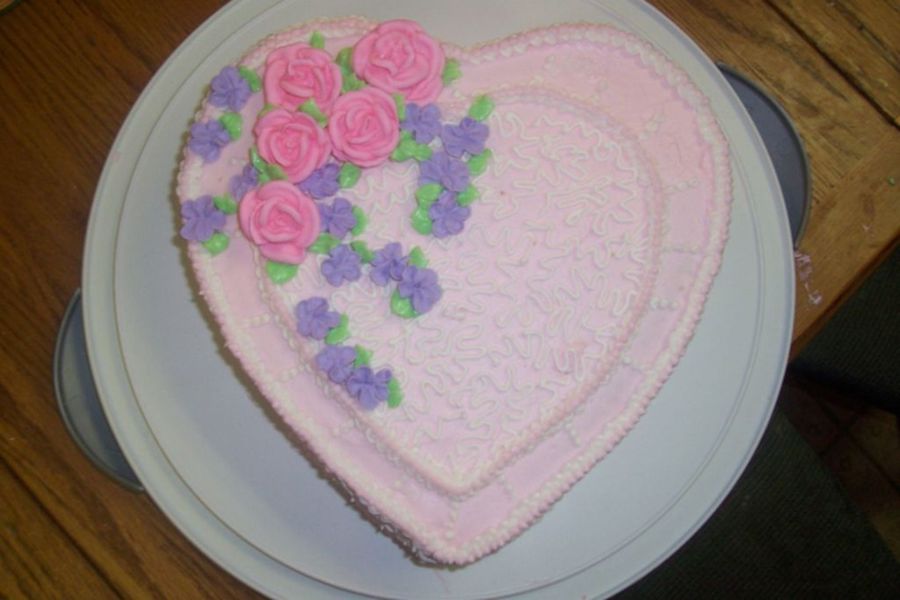 I made this after seeing it in a Wilton Decorating Book from the late 1960's or early 70's. Royal icing flowers & cornelli lace, the rest is buttercream.