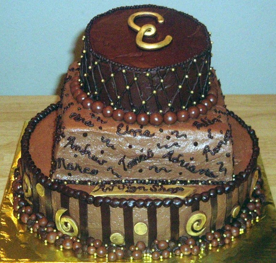 Oh yeah! I forgot to say that the middle tier has all the names of his kids, grand and great grandkids. The monogram is for his last name and the little Art Sign Shop banner stands for the business he used to own. :)