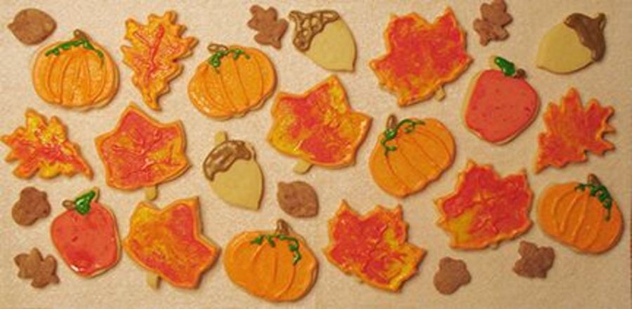 This was my first attempt at Autumn themed cookies. I am new to cake/cookie decorating, but am going to keep going and work my way up to bigger and more ornate confections.