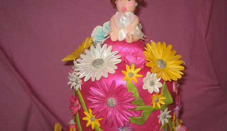 Thanks to the Lord above for letting me finish this cake in one piece! humidity was very high and i had some trouble with the fondant , but hopefully with all those flowers no one will notice.