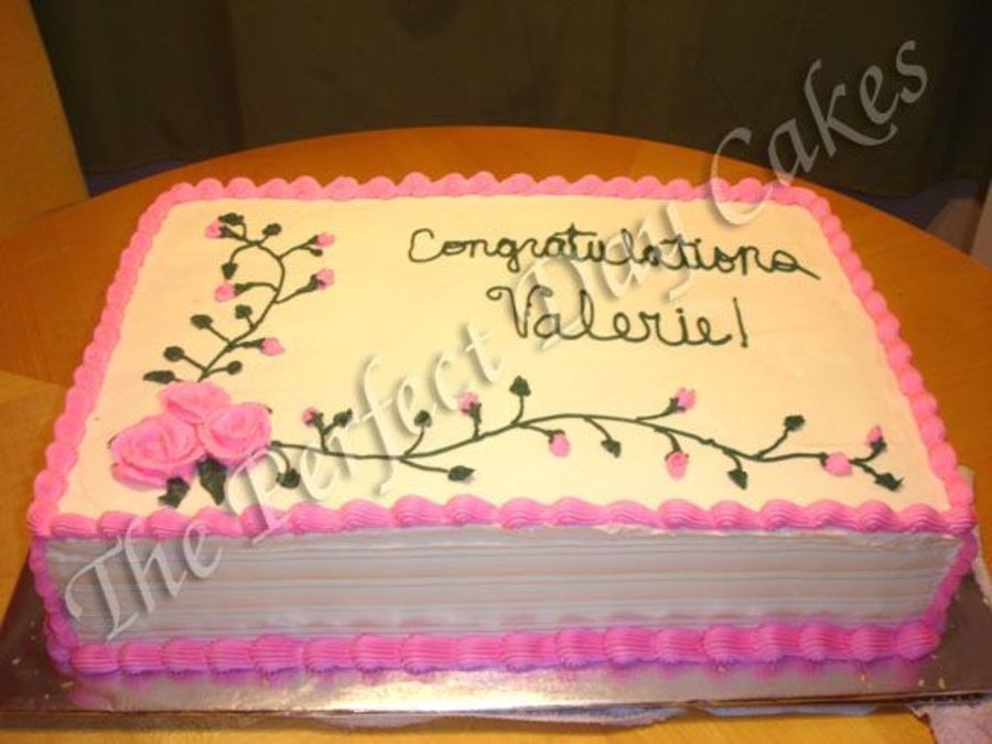 This was a 1/2 sheet (4") white chocolate cake with raspberry filling. The person that ordered this cake loved pink and flowers.
