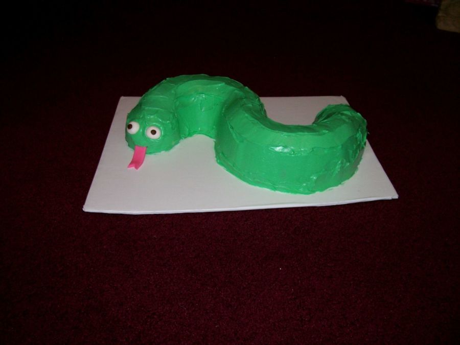 This cake was made just for fun. I have to practice on the head. I just couldn't shape it like a snake. Fondant eyes and tongue.