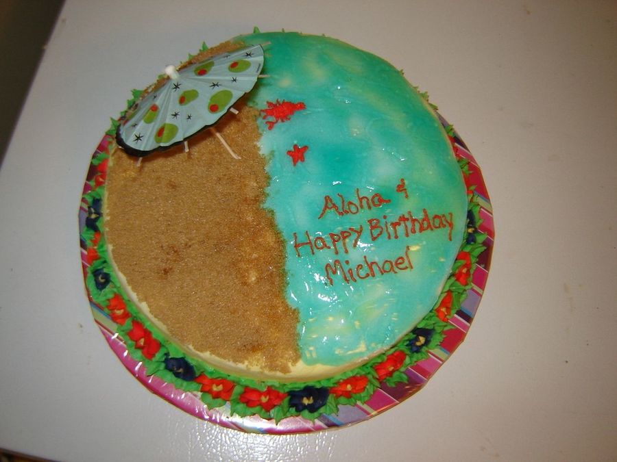 Piping gel water, brown sugar for the beach. Did it for a guy who is going on vacation to Hawaii for his 50th birthday.