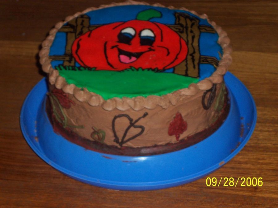 Practice cake to try FBCT again. I had a bunch of bright orange icing I needed to use, so I decided to do a Pumpkin LOL chocolate buttercream
