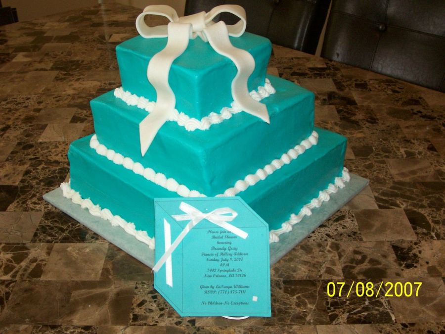 bakenboi29 on 10 Jul 2007 , 1:51am Very pretty. I see it was made to match the invitations. I like the color. Is that whole cake buttercream not including the bow? :)