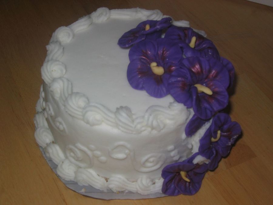 This is a test cake for a bride who wanted a tropical theme. The flowers are fondant. The bride wanted purple hibiscus and she liked the scrolls for the side of the cake, however, I would take creative suggestions on how it looks. I thought that the scrolls were a little formal for the flowers. Thanks for looking.